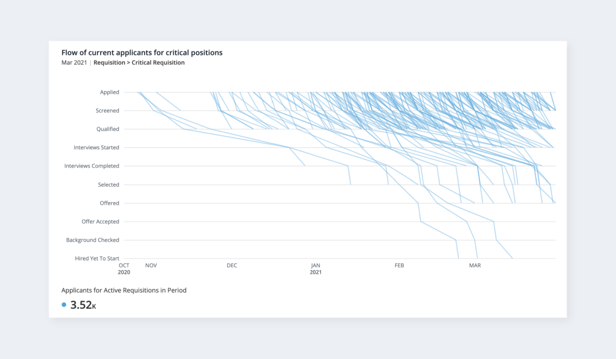 Keeping positions filled requires applicants to flow in and through the hiring pipeline. Comparing the volume and conversion rates for critical and non-critical positions will indicate whether or not your hiring processes are working.