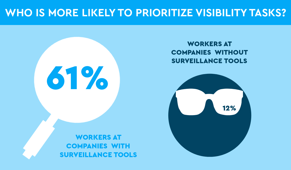 Employees with employers who use surveillance tools were also more than twice (and in some cases three times) as likely to commit the most egregious performative behaviors, like keeping a laptop screen awake while not working, asking someone to do a task for them, and exaggerating when giving a status update.