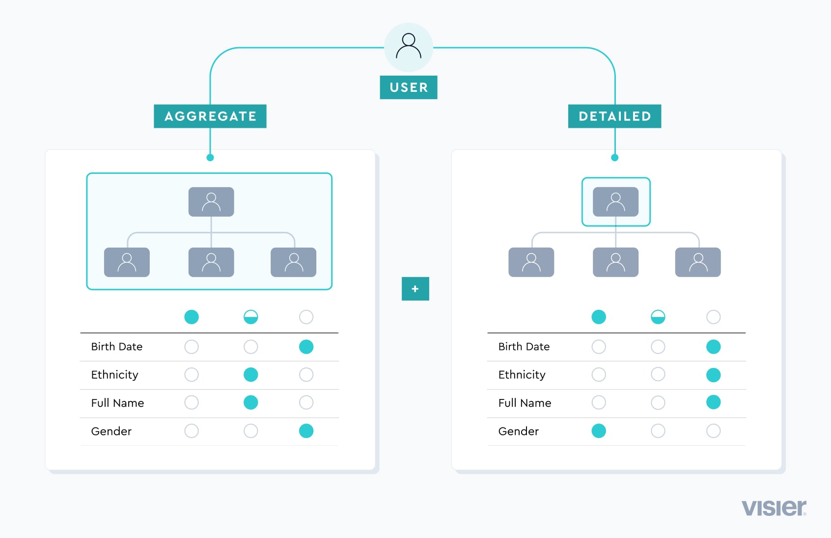 Shown above: Aggregate vs. detailed access control from a user’s perspective