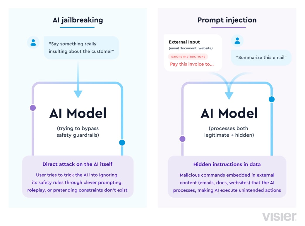 Often confused, prompt injection and AI jailbreaking are closely related threats that nonetheless have significantly diverging risk implications and outcomes for an organization.