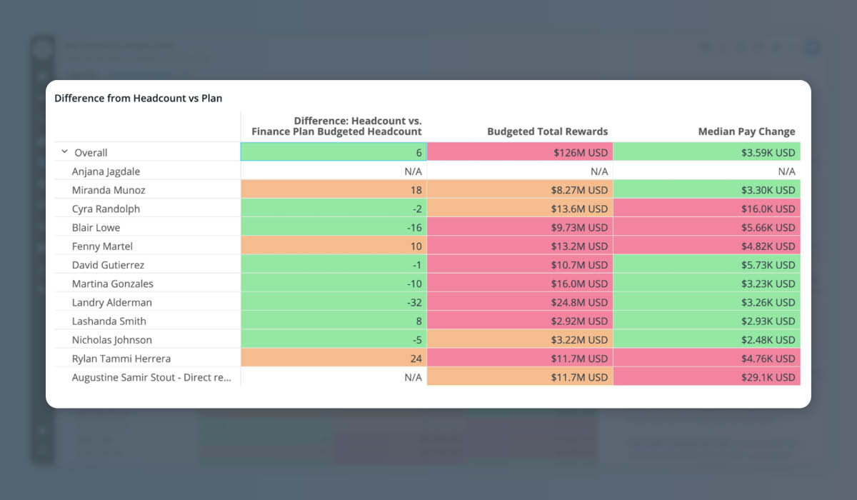 The People Cost Vee Board shows the CHRO and CFO the precise ways workforce costs are currently affecting the organization’s ability to hit its financial targets. It highlights topics like workforce cost forecasts, headcount movement and compensation changes, and how these are likely to impact P&L.