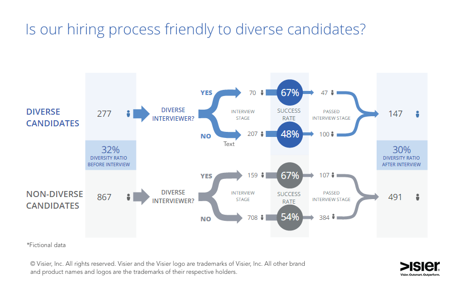 Data visualization showing whether a company’s hiring process is friendly to diverse candidates
