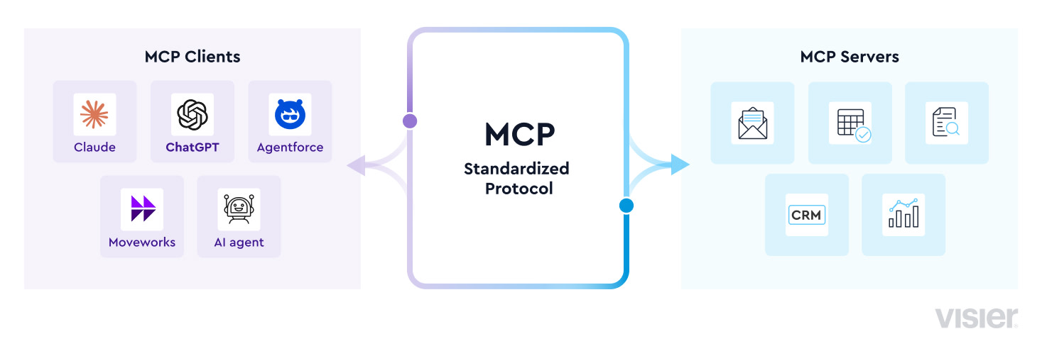 Think of it as the USB-C of AI integrations. It’s a single, standardized connector linking enterprise people data to intelligent workflows. Instead of managing multiple APIs for each AI tool, teams can use one secure connection that inherits Visier’s permissions and governance policies. The result is faster innovation and greater control.