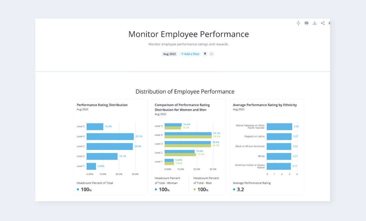 Plus, HR management isn’t only about performance. It can refer to things like equal opportunity and diversity. If you’re striving for more diversity in your company, for instance, an HR dashboard is an ideal way to see how things are going.