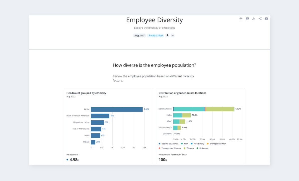 A diverse workforce boosts creativity, improves the decision-making process, and brings more opportunities for growth. And what better way to review the diversity of your company’s workforce than through an HR dashboard?