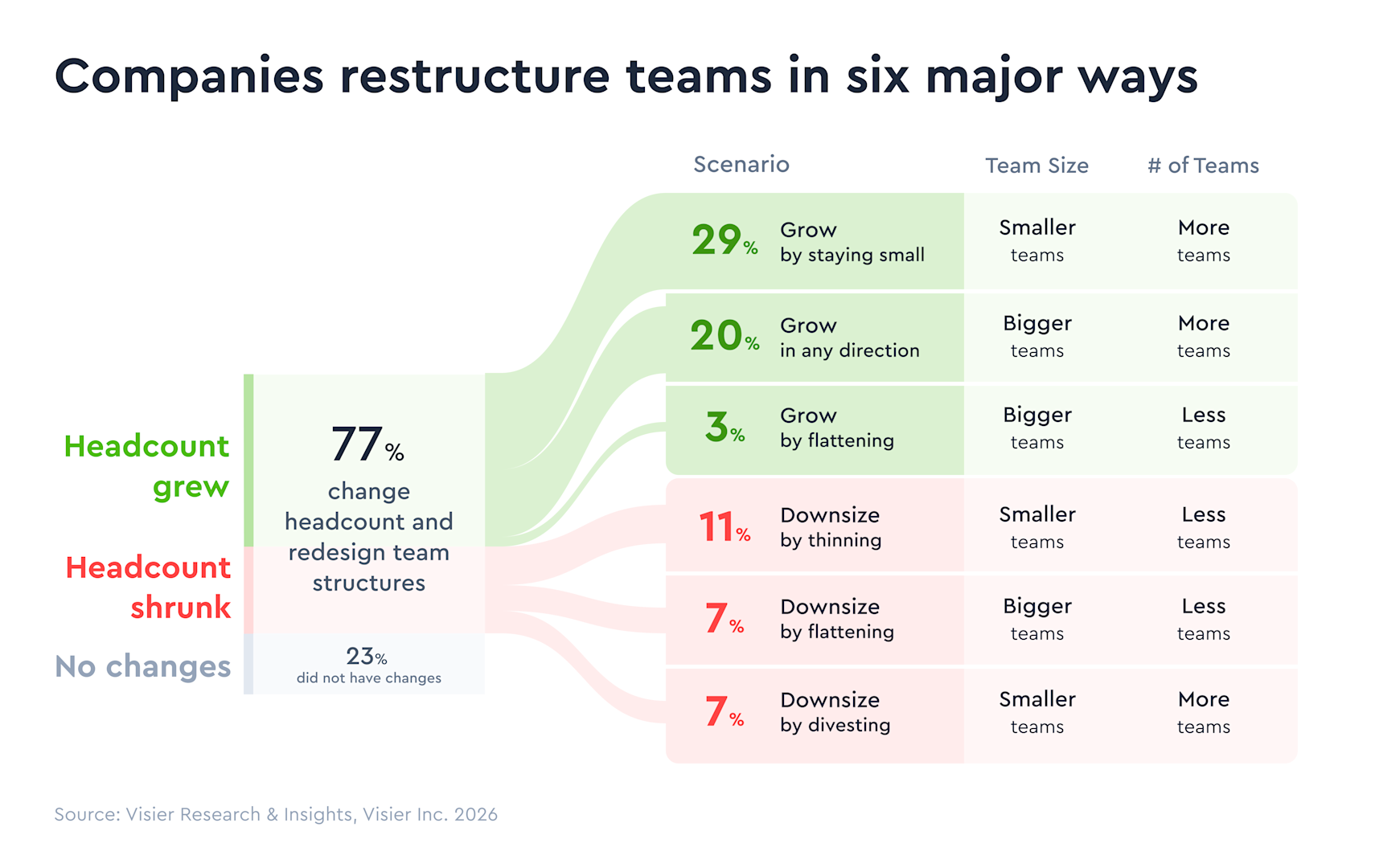 New research shows how companies actually redesign teams when growing and shrinking