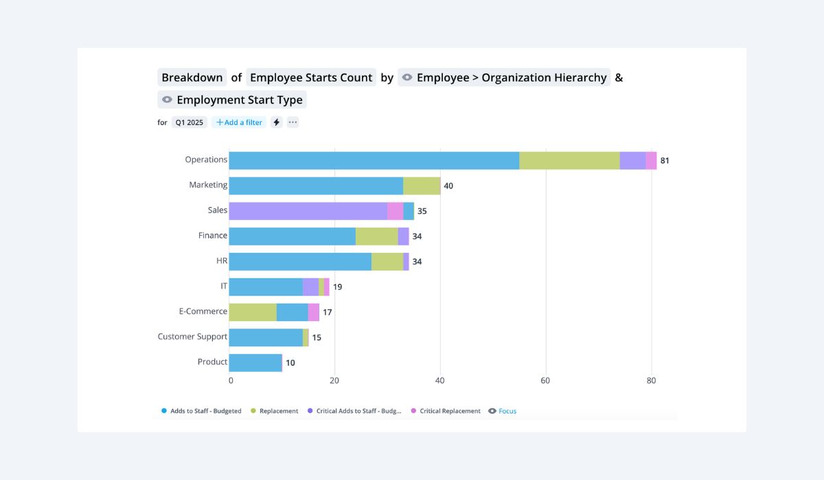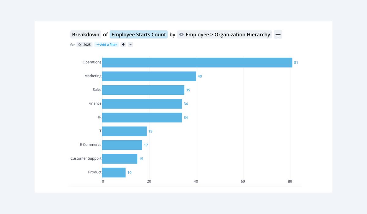 Powerful analytic query engines can also predict future actions based on the patterns of the past. Modern HR systems often leverage AI for predictive analytics, like forecasting turnover or identifying employee engagement trends. For example, Visier uses the random forest predictive methodology. By using such advanced models, your HR teams can make more informed, data-driven decisions to proactively address workforce challenges.