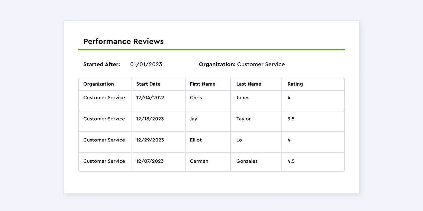 When you run a report against your transaction system, the data that is returned is exactly as it exists in that system’s database. These reports present a snapshot in time, which is great for giving you a read on what has happened up until today, exactly as it was captured. For example, How many people started? How many performance reviews were completed? How many people got 5s?