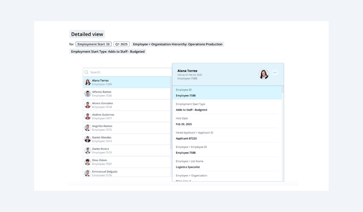 But when you unify recruiting data with information from the rest of the employee lifecycle, you are able to follow the thread from the point of hire and beyond, and spot important trends that could impact employee retention, workforce productivity, engagement, and more.