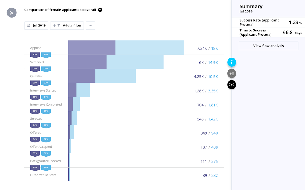 This visualization shows the number of applicants at different stages within the hiring funnel.*Fictional data used for customer privacy.