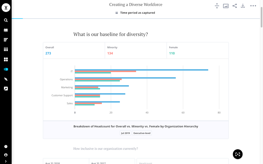 This headcount breakdown reveals whether there is diversity within the executive level so you can determine if more diverse leadership candidates are needed.*Fictional data used for customer privacy.