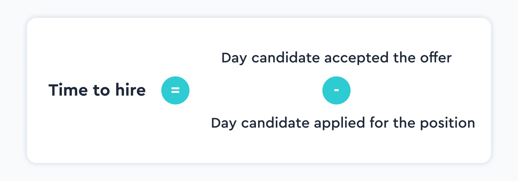 Time to hire looks strictly at the time lapsed from the moment the candidate applies to a job until they accept the offer. It’s solely focussed on the internal recruitment process.