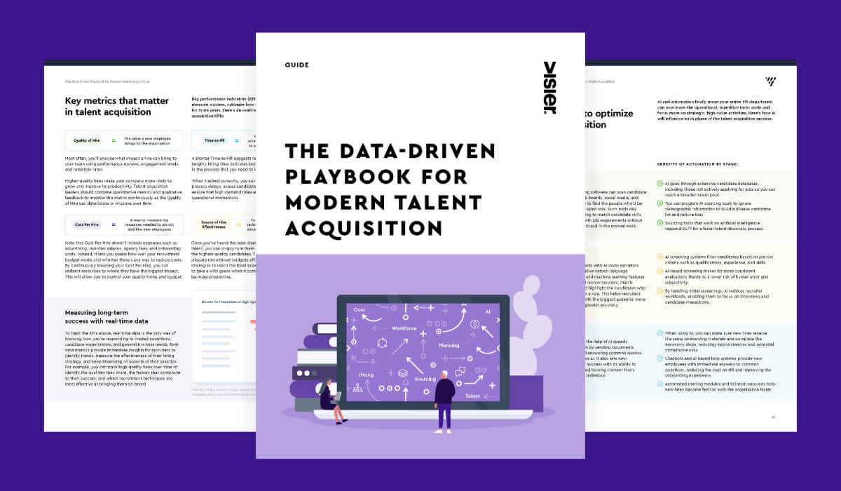 With practical applications, key metrics, and real-world examples, this playbook helps HR professionals and talent acquisition leaders stay ahead of the curve. Gain clarity on metrics like cost-per-hire, quality-of-hire, and sourcing effectiveness, and discover how AI can simplify screening, onboarding, and retention.