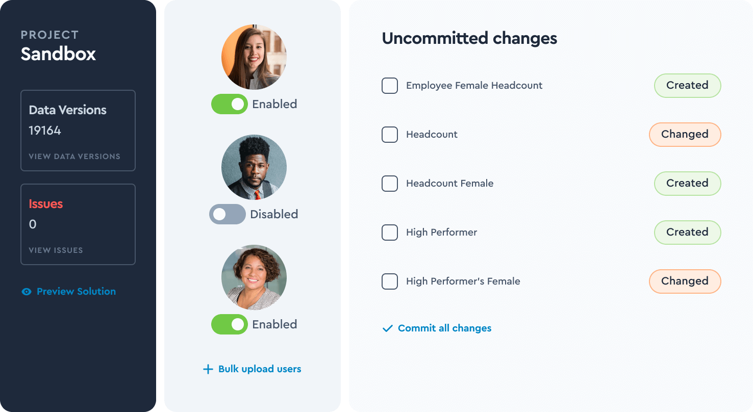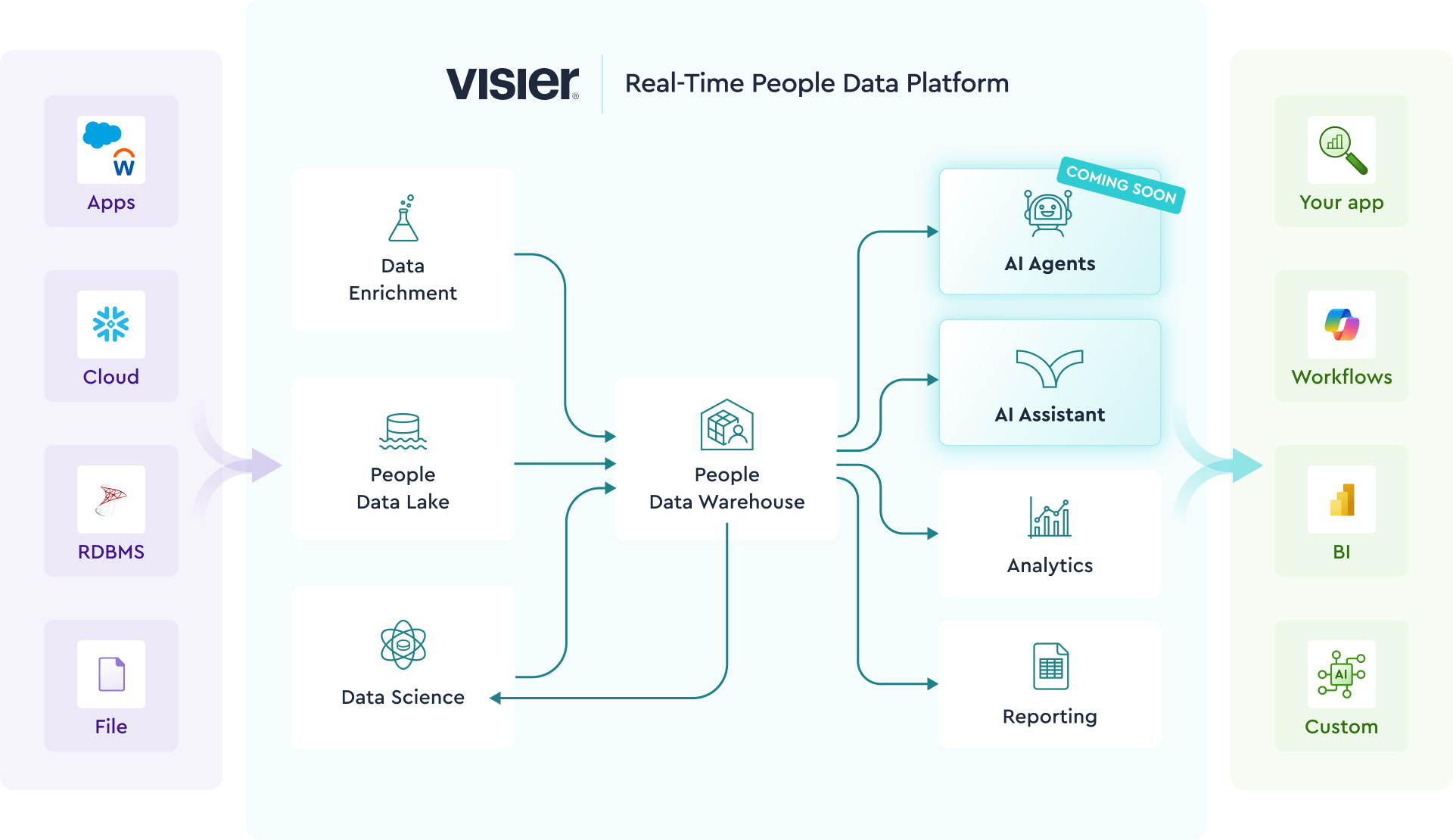 Quickly integrate and manage HR and business data within Visier, streamlining workflows within a unified, self-serve analytics environment.